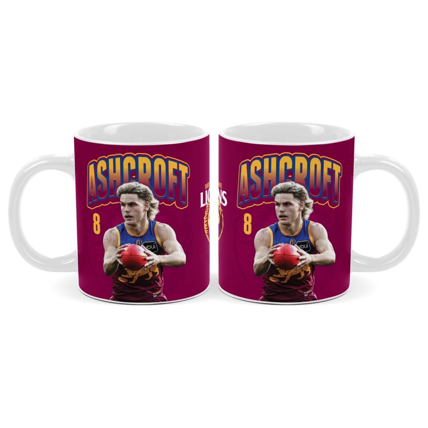 Enjoy your favourite hot drink while backing your team with the official Brisbane Lions Will Ashcroft Coffee Mug. Featuring a bold player graphic and club colours, this 330ml ceramic mug is perfect for home or office use.