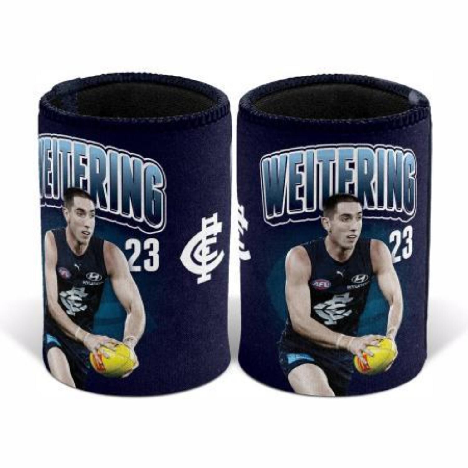 Show your team pride while keeping your drink cool with the official Carlton Blues Jacob Weitering Stubby Holder. Featuring bold team colours, player name and number, this design is perfect for game day, BBQs or relaxing at home.
