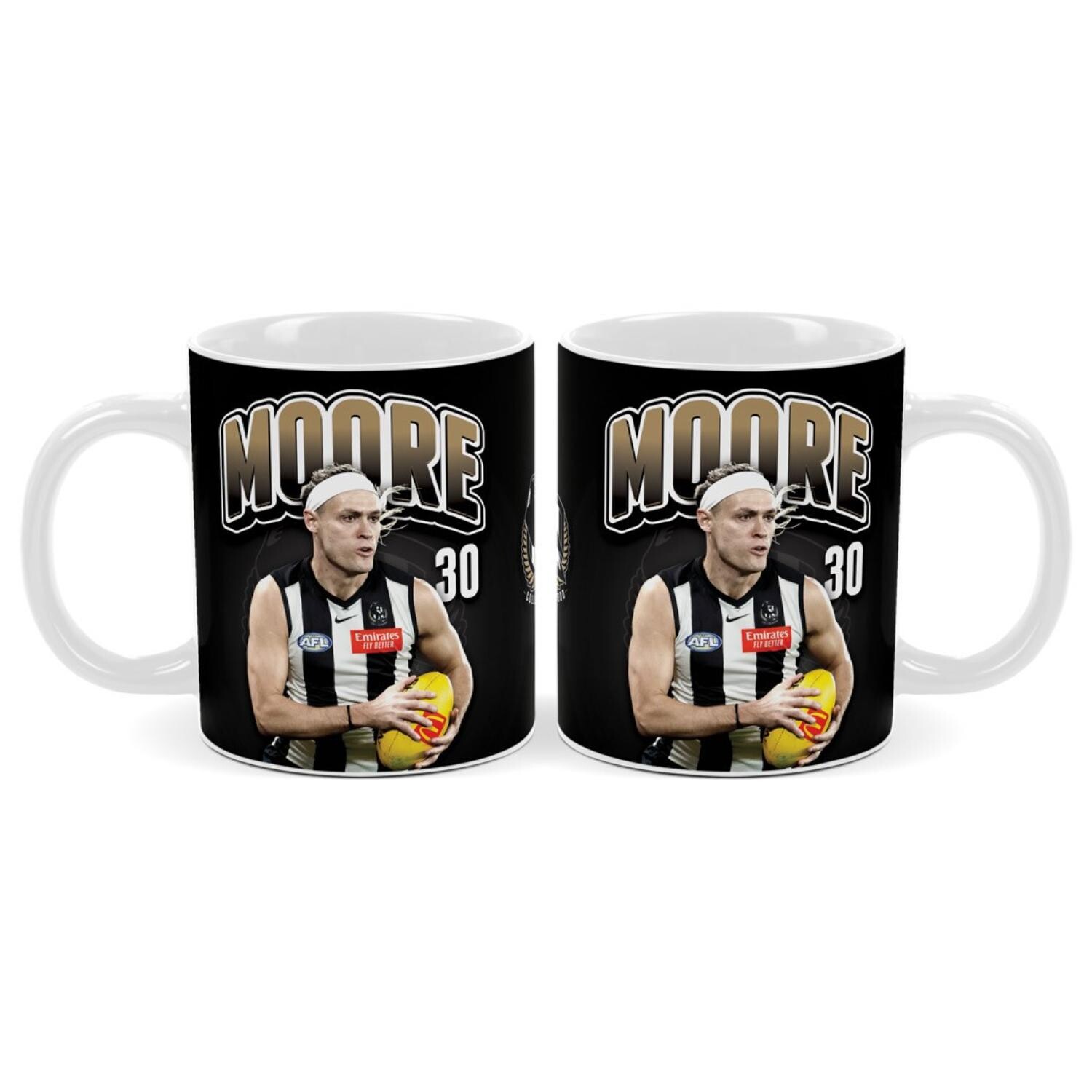 Enjoy your favourite hot drink while backing your team with the official Collingwood Magpies Darcy Moore Coffee Mug. Featuring a bold player graphic and club colours, this 330ml ceramic mug is perfect for home or office use.