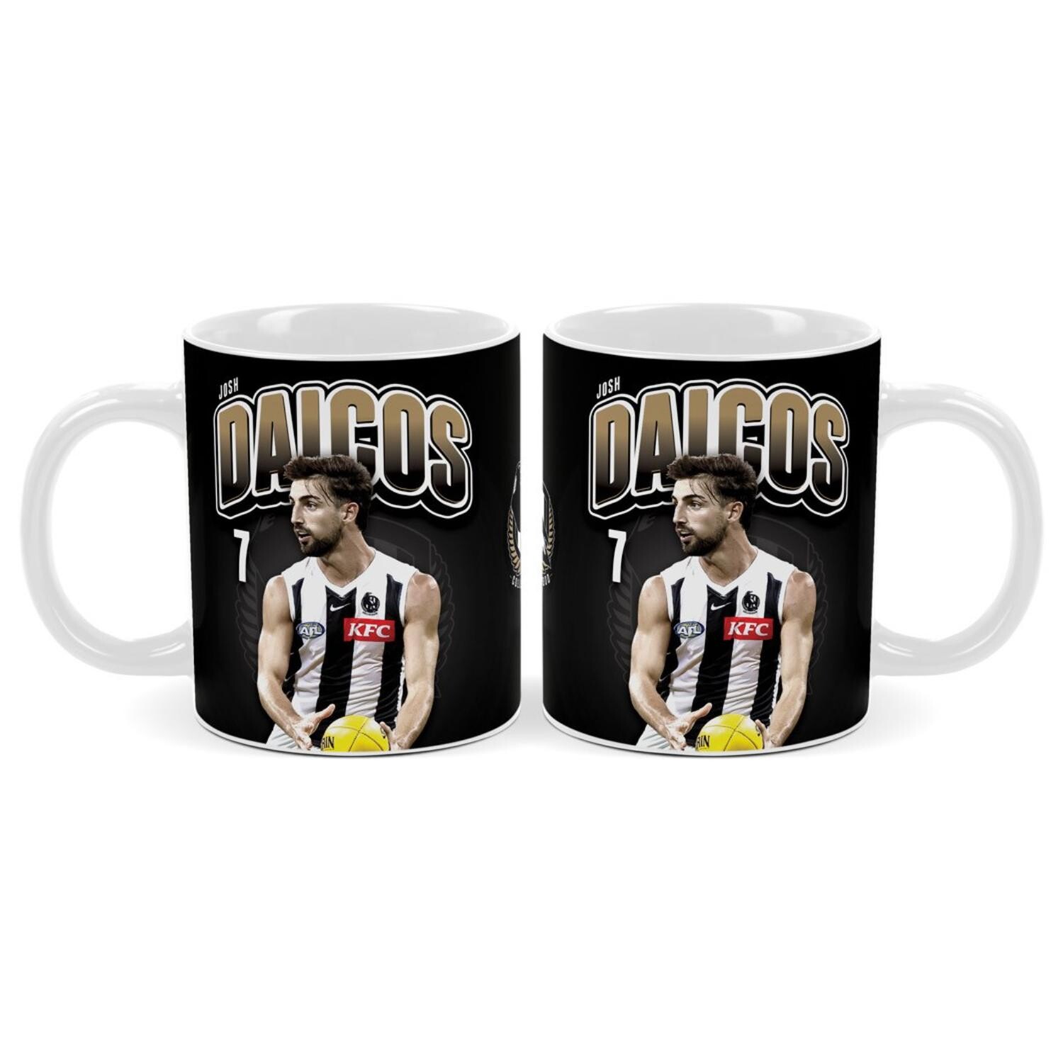 Enjoy your favourite hot drink while backing your team with the official Collingwood Magpies Josh Daicos Coffee Mug. Featuring a bold player graphic and club colours, this 330ml ceramic mug is perfect for home or office use.
