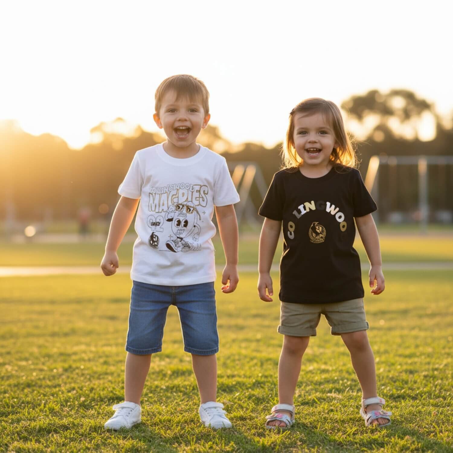 Kick a Goal and Review Collingwood Magpies Kids Twin Pack Graphic Tees