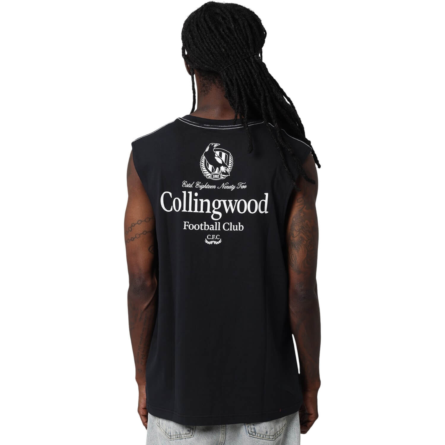 Collingwood Magpies Mens Multi Logo Muscle Top is built for warm days, training sessions, and game day style. The clean front keeps it sharp with a subtle club mark, while the back brings the statement with a bold 50/50 print featuring the club name and logos. Finished with contrast shoulder chainstitching for a premium look and feel.