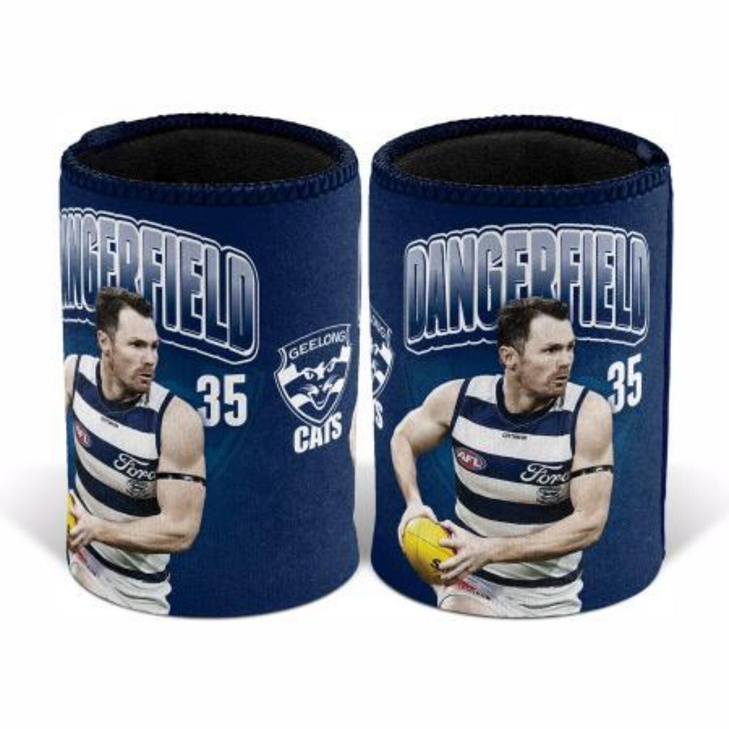 Show your team pride while keeping your drink cool with the official Geelong Cats Patrick Dangerfield Stubby Holder. Featuring bold team colours, player name and number, this design is perfect for game day, BBQs or relaxing at home.