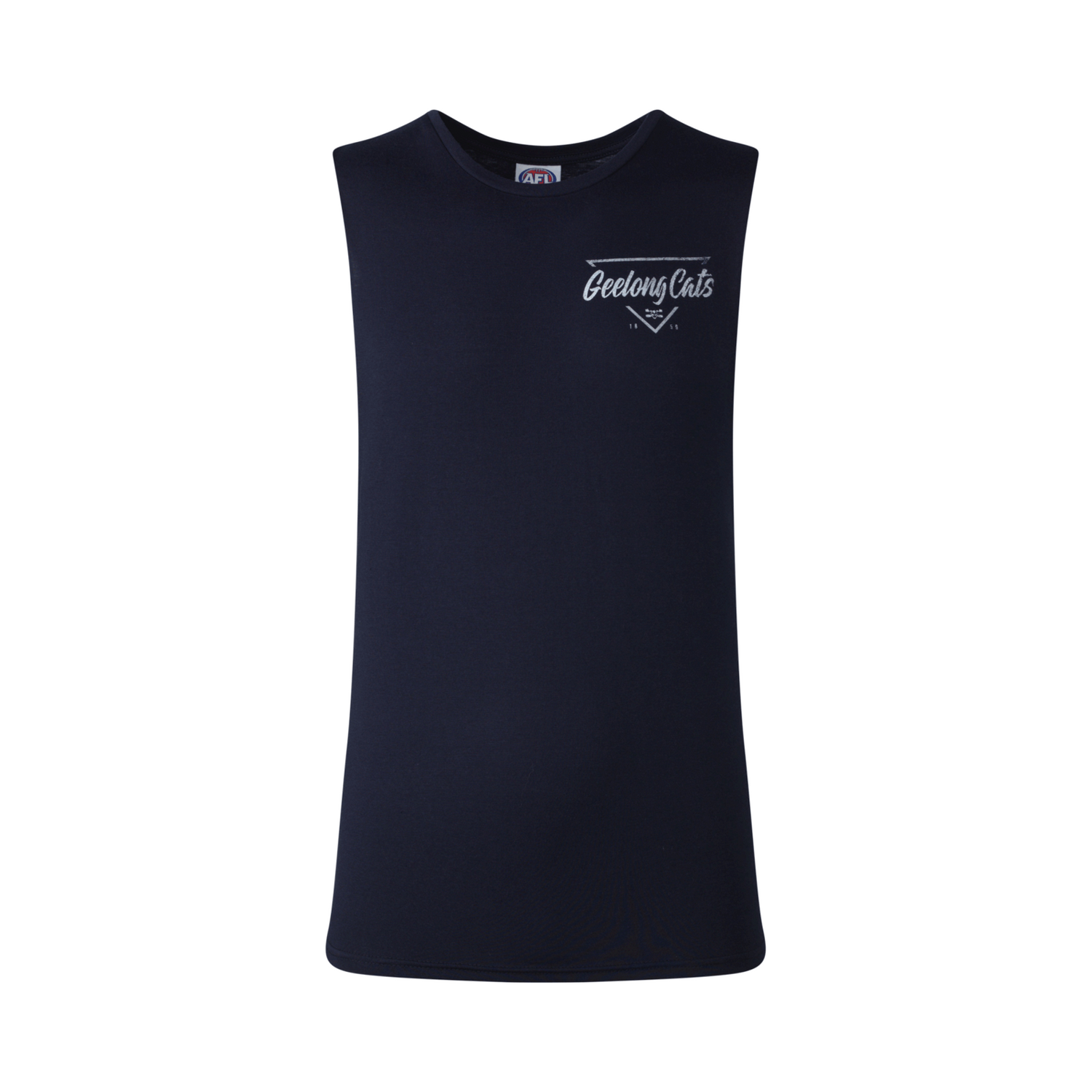 This sleeveless tank features a classic athletic cut, ensuring a full range of motion whether you are active or relaxing. The front proudly displays a bold Geelong Cats graphic in official club colours, making your allegiance unmistakable. Officially licensed by the AFL, this football tank seamlessly blends active wear performance with genuine supporter pride.