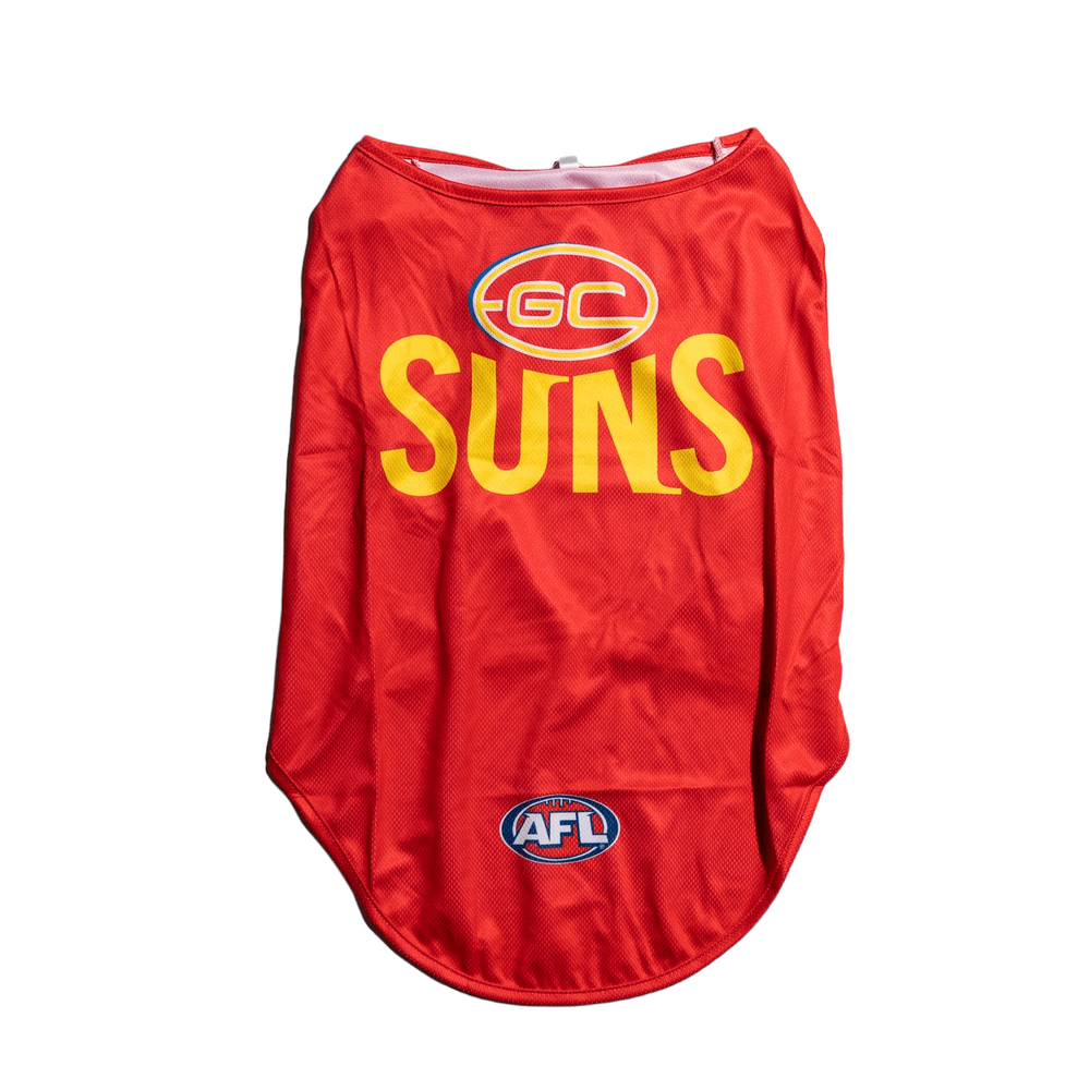Calling all dog lovers and footy fans! Get ready to unleash your pup's team spirit with our new Gold Coast Suns Dog Guernsey.