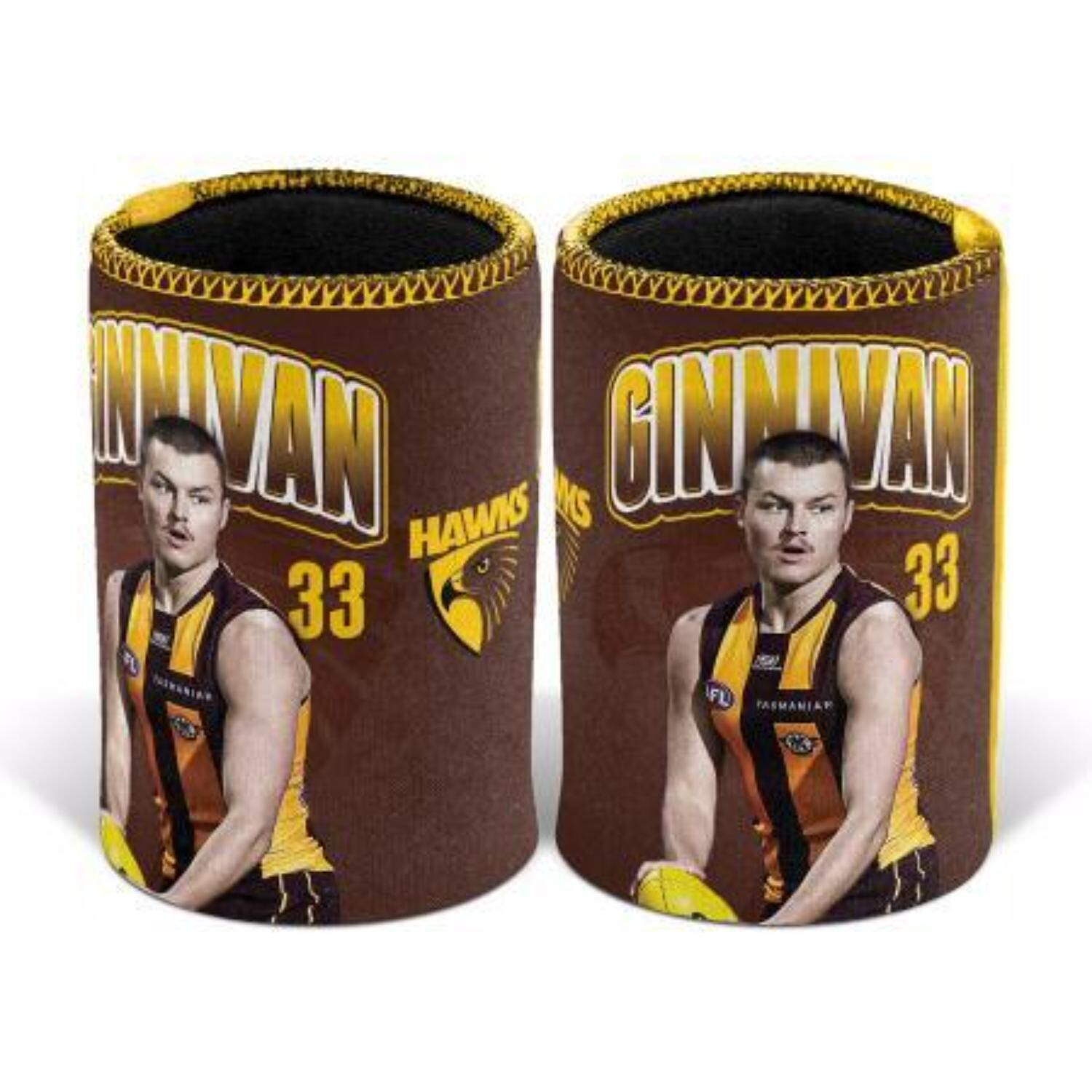 Show your team pride while keeping your drink cool with the official Hawthorn Hawks Jack Ginnivan Stubby Holder. Featuring bold team colours, player name and number, this design is perfect for game day, BBQs or relaxing at home.