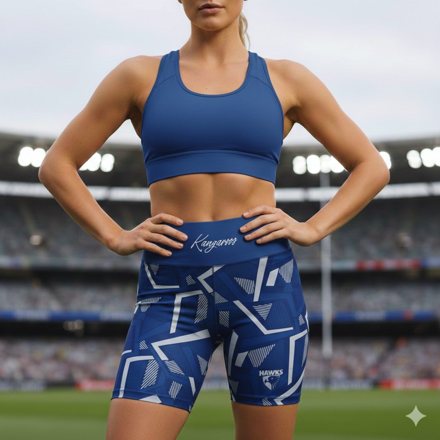 Train harder and represent your club in the North Melbourne Kangaroos Voltra Women's Exercise Shorts. Designed for performance and comfort, these shorts feature a high-rise waistband for added core support and a flattering compression fit.