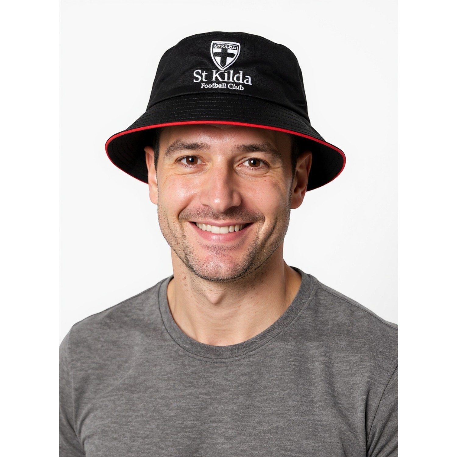 Top off your game-day look with the St Kilda Saints Crest Bucket Hat. Featuring front and back embroidery, a contrast underbrim and classic bucket styling, this hat brings bold team spirit with all-day comfort. Made in a one-size-fits-most design, it is the perfect year-round supporter essential and a great gift idea for any AFL fan.