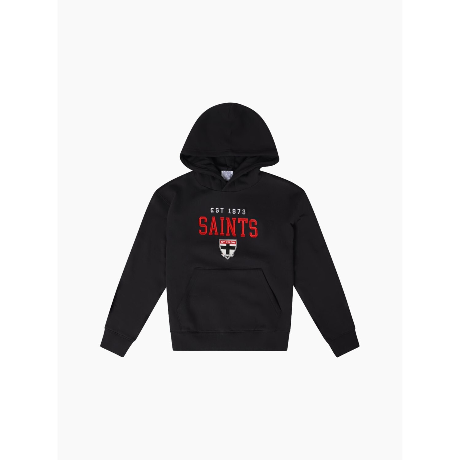 Gear up the next generation of passionate fans with the official St Kilda Saints Youths Arch Vintage Hood. Designed to keep junior supporters incredibly warm while looking sharp, this premium pullover perfectly blends classic retro aesthetics with modern comfort. The front chest showcases high quality embroidered arched team text alongside the official club logo, making their loyalty instantly recognisable.