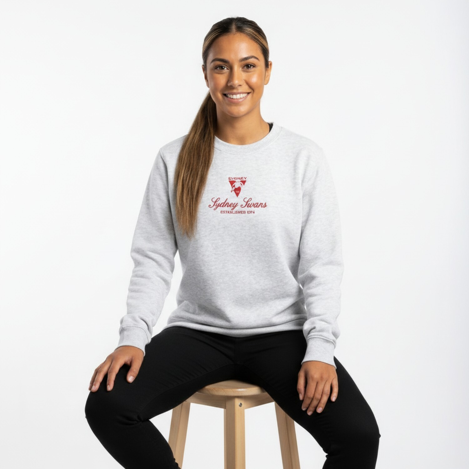 The Sydney Swans Womens Crest Crew is a clean and timeless supporter essential designed for everyday comfort and effortless style.