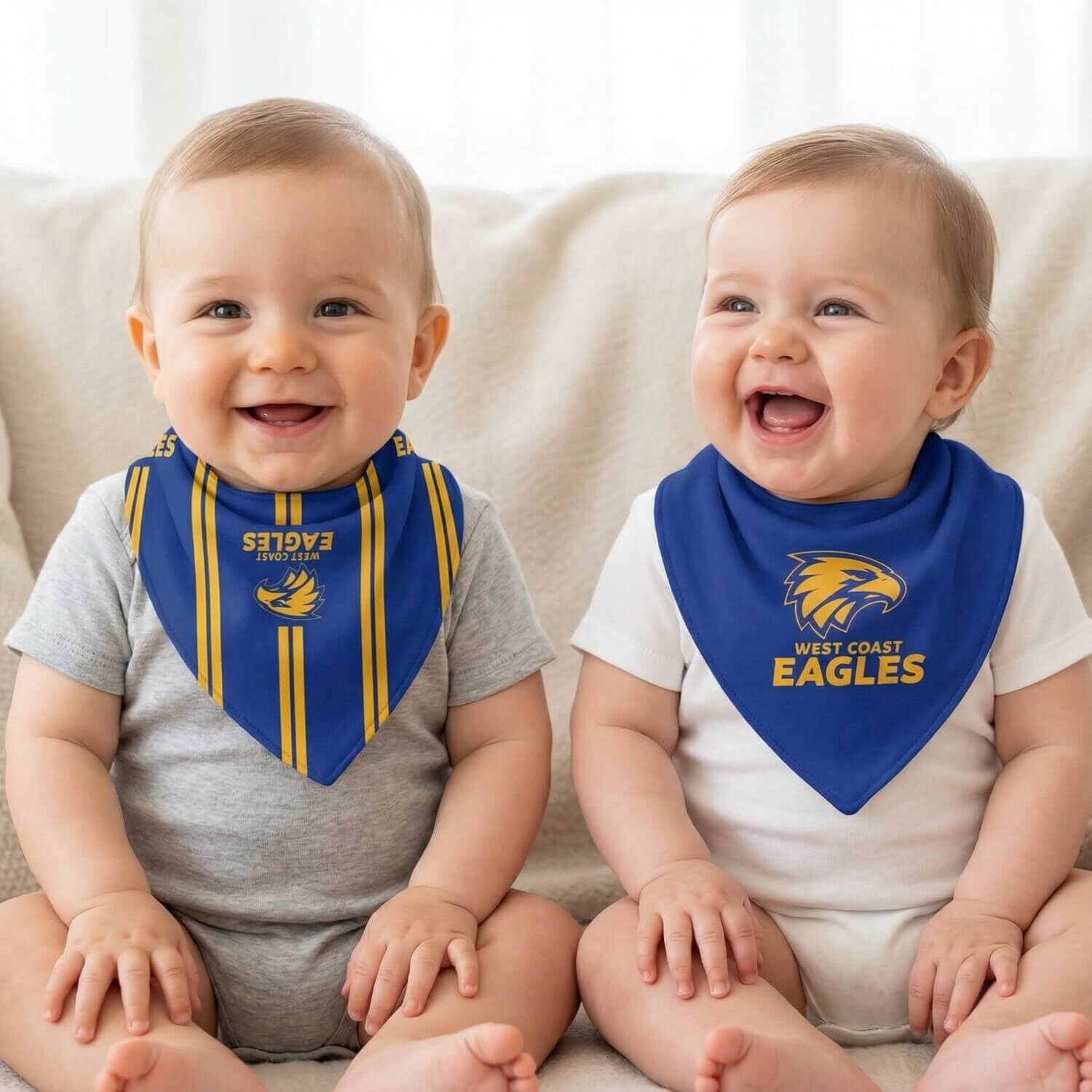 Get your little fan match ready with the West Coast Eagles Baby Game Day Bibs 2 Pack. Designed for comfort and practicality, these bandana style dribble bibs are perfect for everyday wear or game day fun.