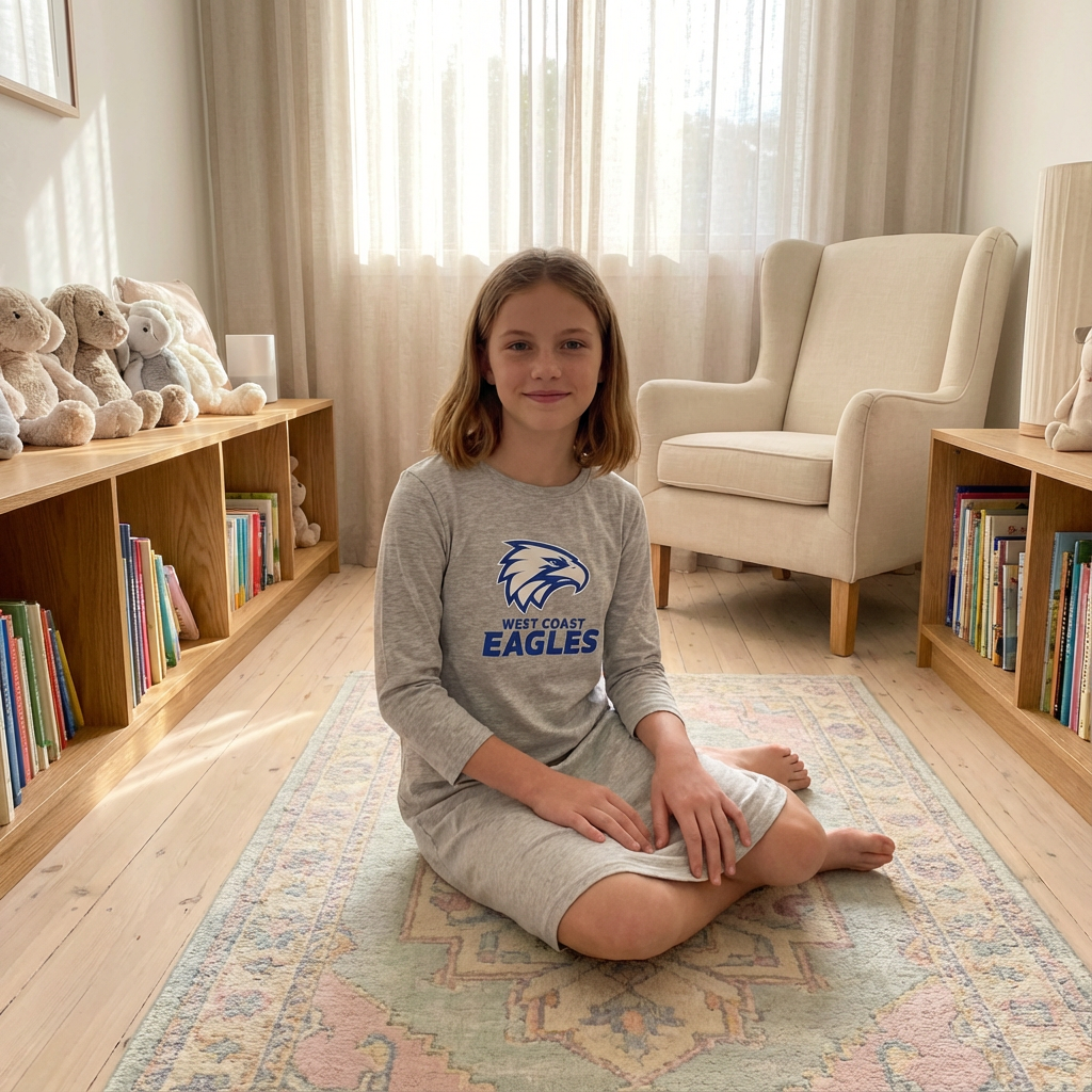 West Coast Eagles Girls Long Sleeve Night Dress Members Only Specs